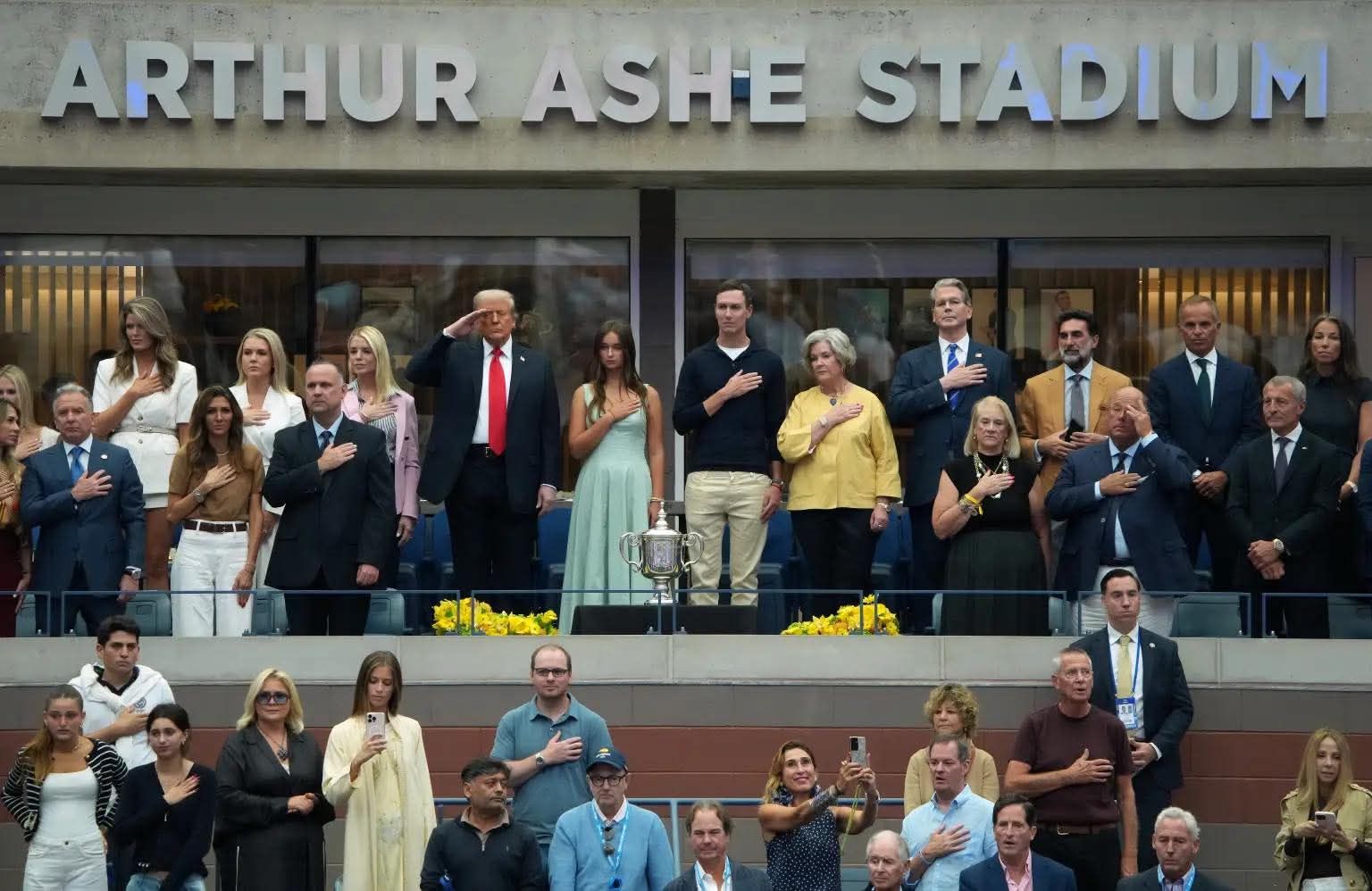 Donald J. Trump ishte në tribunën e stadiumit të tenisit “Artur Ashe” në Nju-Jork për të ndjekur finalen e meshkujve në #USOpen mes…