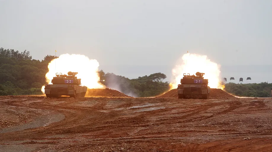 Presidenti i Tajvanit, Lai Ching-te ka mbikqyrur nga afër stërvitjen ushtarake në ishull me tanket e prodhimit amerikan “Abrams M1A2T”,…